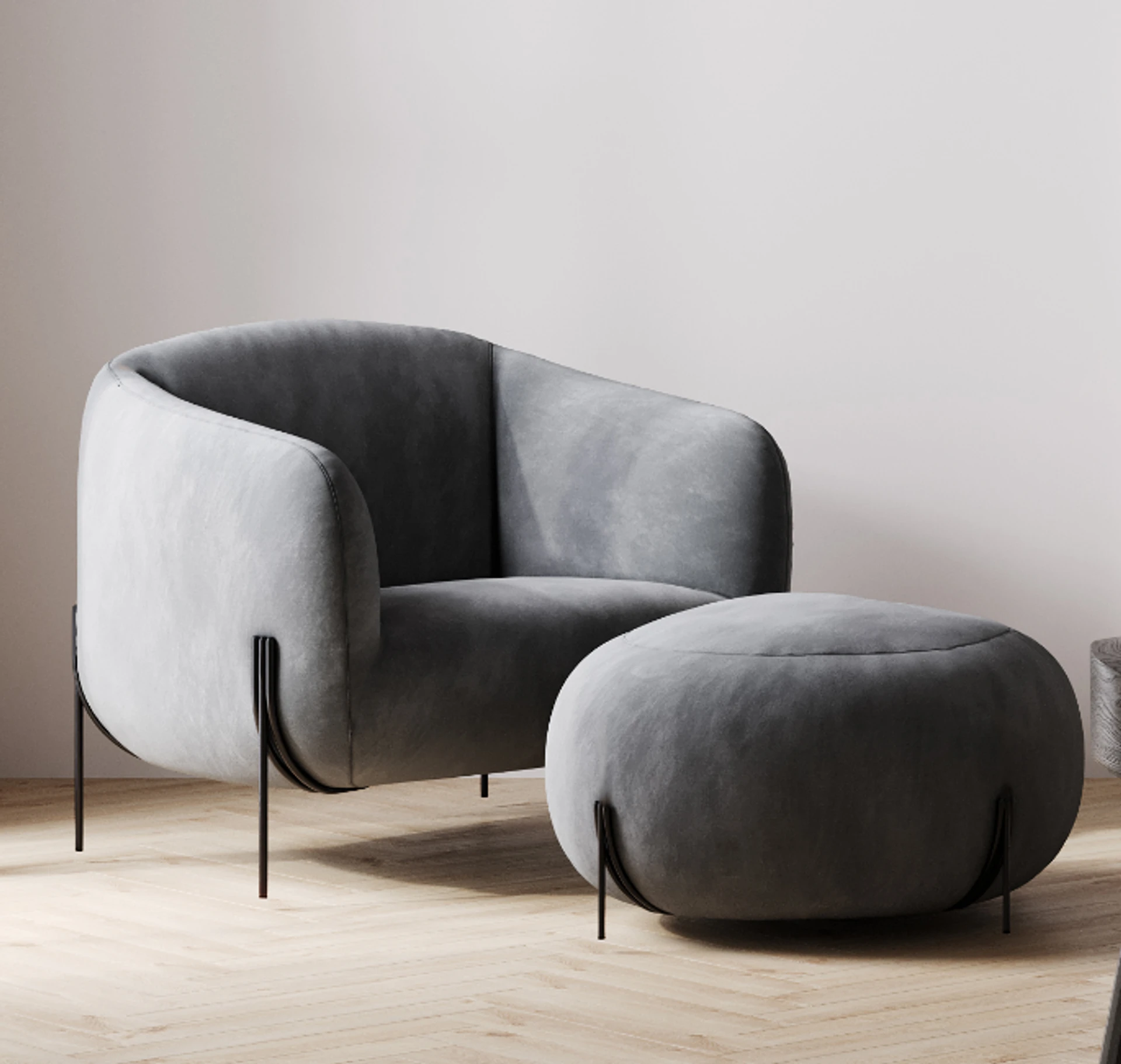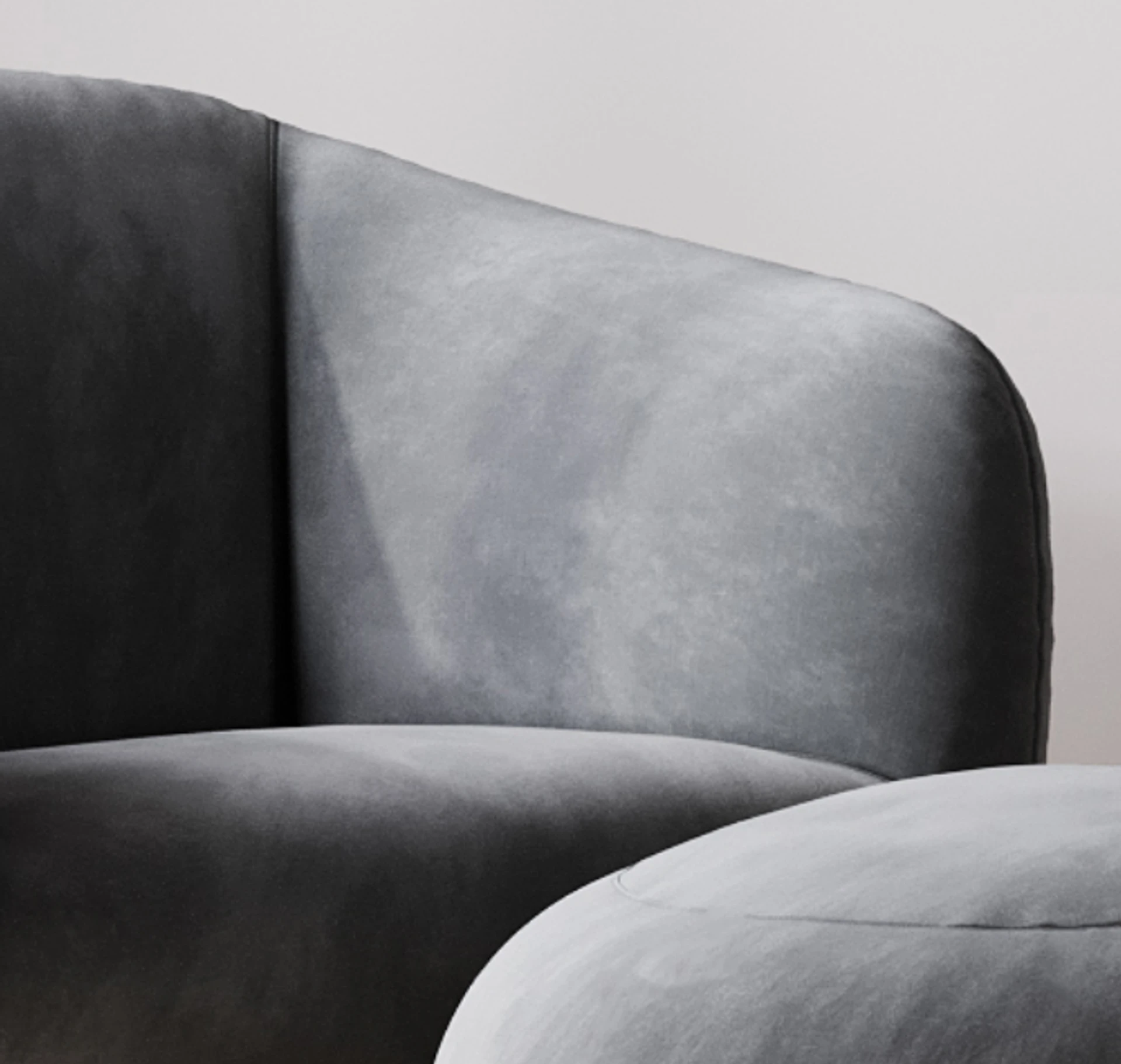Adèle - Fauteuil gris boule en velours & repose-pied