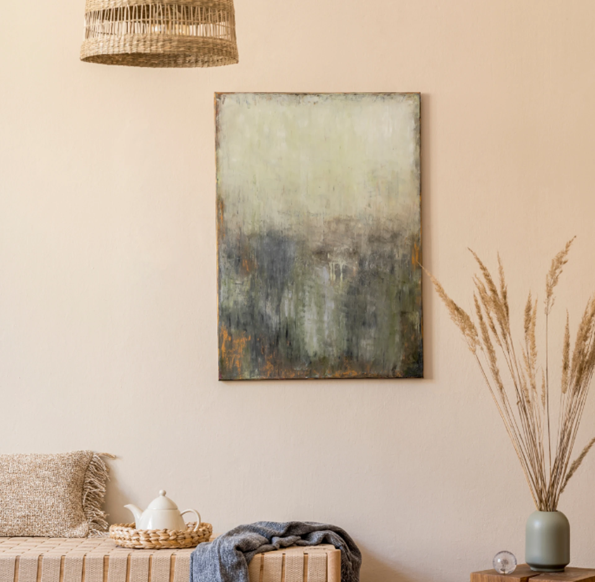 Entre textures brutes et teintes végétales, cette peinture abstraite évoque les paysages naturels avec subtilité. Elle capture l’essence de la nature sans jamais la représenter littéralement, laissant place à l’interprétation et à l’émotion. Une œuvre contemporaine, à la fois douce et expressive, pensée pour apaiser l’espace et éveiller les sens. À accrocher seule ou en composition murale pour créer une atmosphère organique.